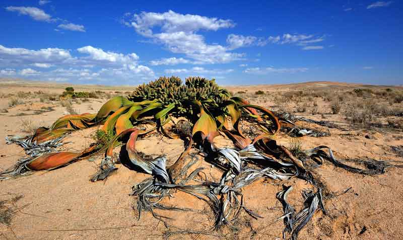 Tanaman bernama latin Welwitschia mirabilis ini sangat menakjubkan. Tumbuo hanya terdiri dari dua daun, satu batang kokoh, dan akar. Itu saja! Dua daun tersebut terus tumbuh hingga menyerupai surai berbulu bagai di film alien.
